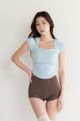 氣質遮肉~方領帶胸墊後綁帶短袖上衣